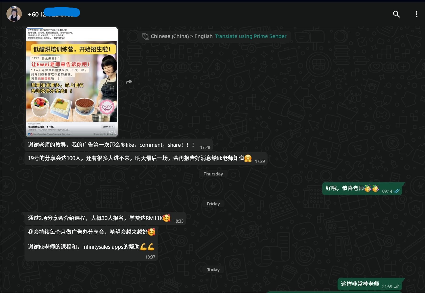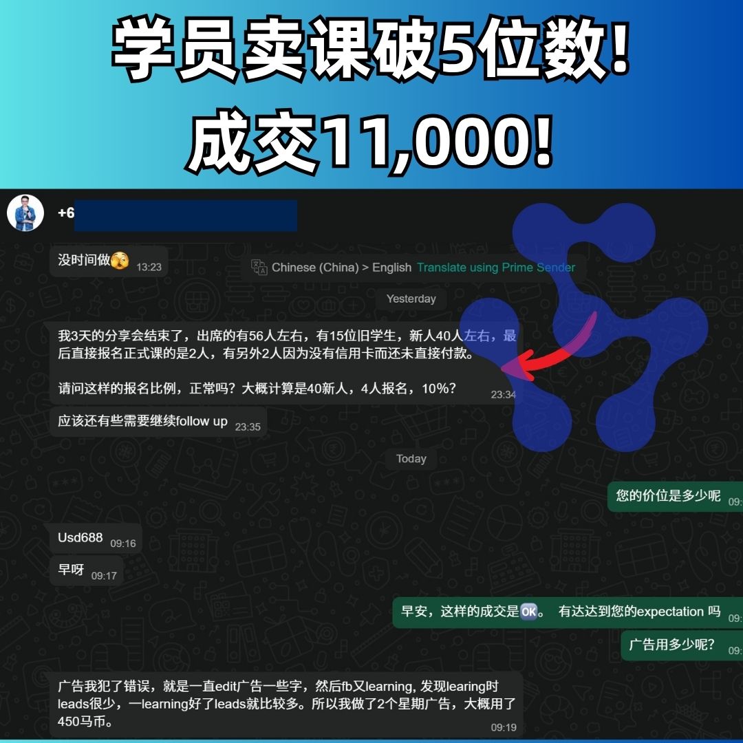 只是上了我们一堂训练课,短短2小时内就成交超过RM11,000
